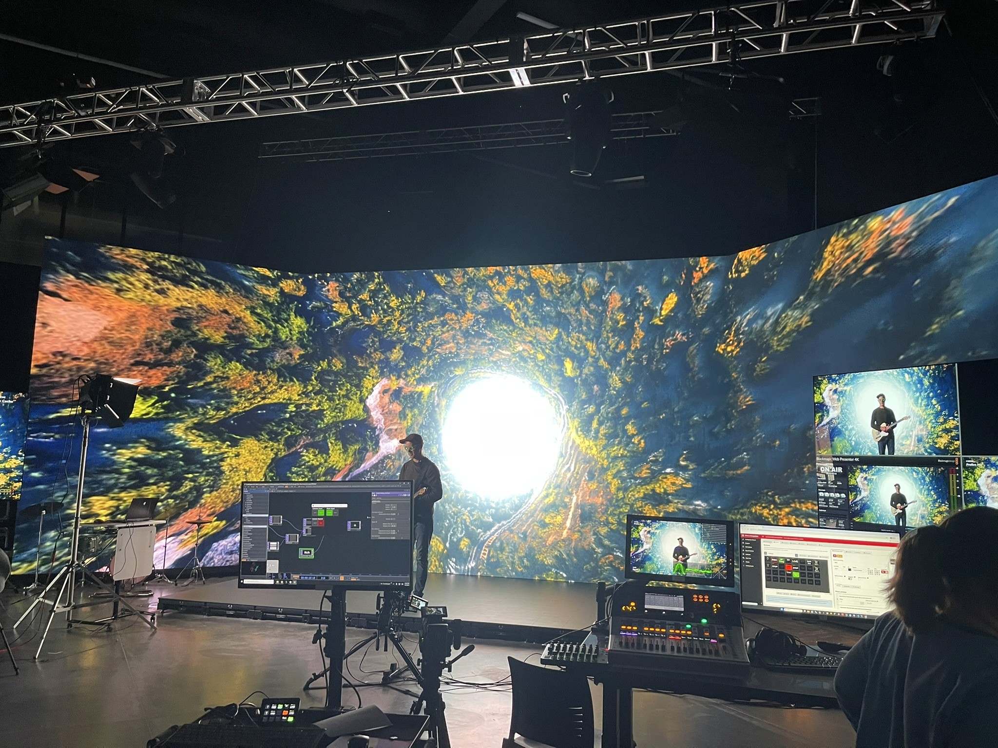 I'm a student at Miami University in the ETBD program. I work in Notch and TouchDesigner to create immersive entertainment. When I'm not making large scale entertainment I'm a community focused designer, creating logos and websites for small businesses and local groups.